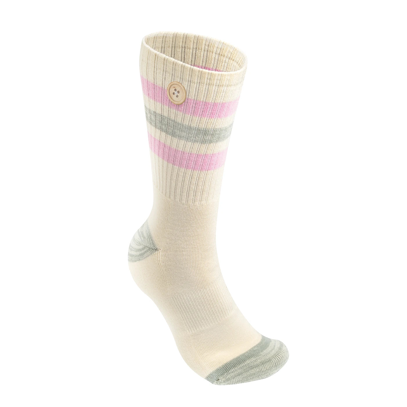Ah, Madison Avenue, known for it's luxurious storefronts and boutiques, and home to the legendary Advertising Industry of the Big Apple. The folks on this world-famous street get it: In a concrete world of gray, standing out is the name of the game. How about a flash of pink? Introducing the Madison Avenue Casual Sock, an ultra-comfy fit featuring a pink-gray stripe design and a wooden button.
