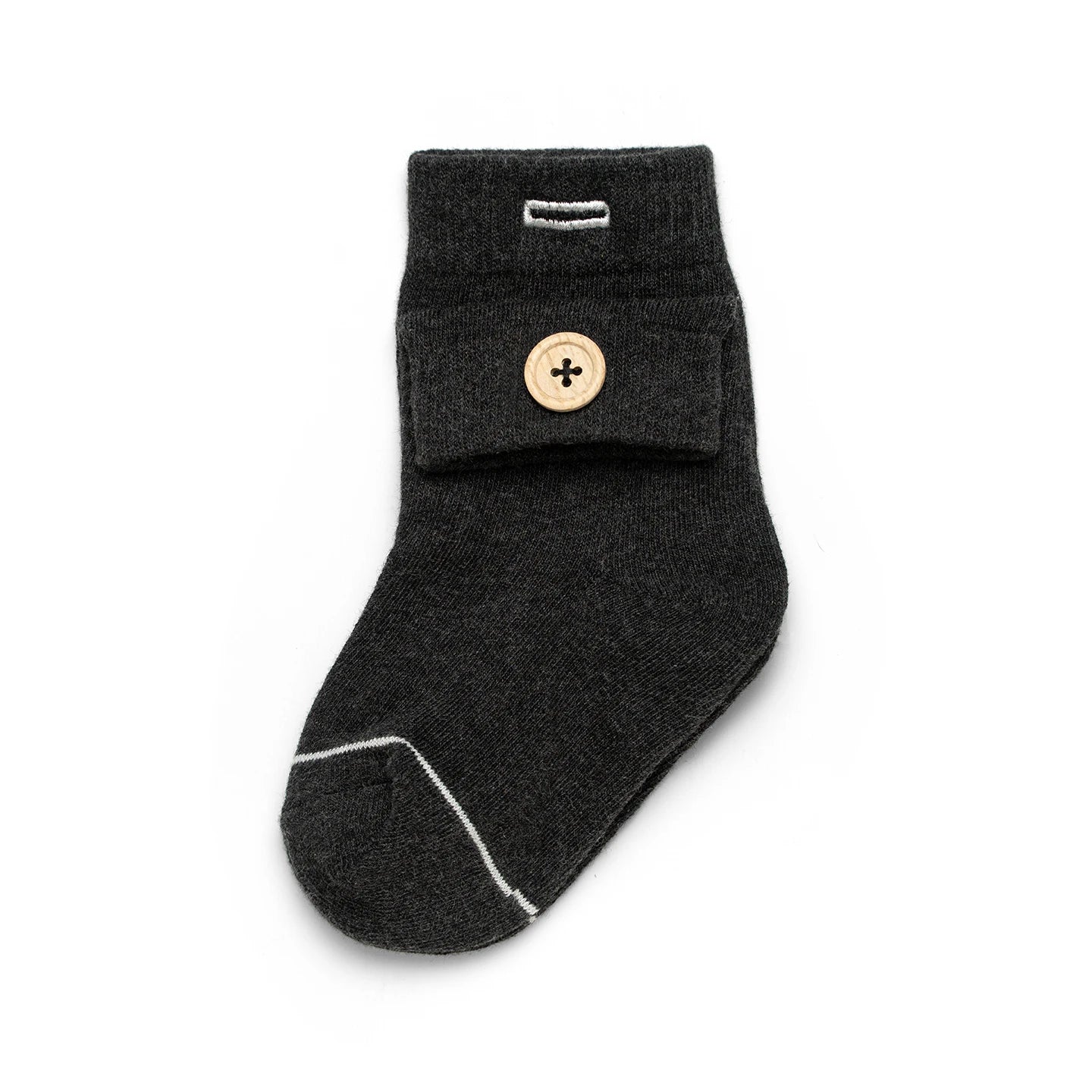 Featuring a simple, rich charcoal-gray hue, and an understated wooden button, the Pearl Street Dress Sock is a bonafide classic in the making, a no-brainer for any dress shoe.