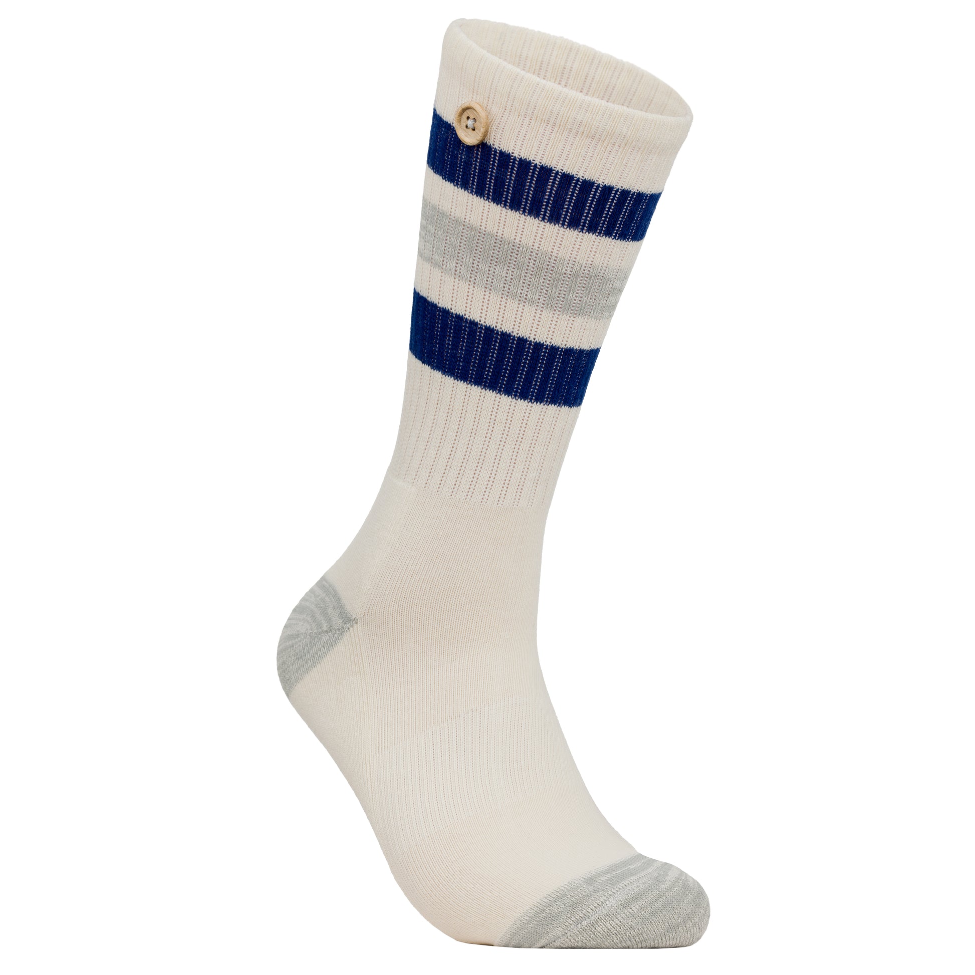SoHo is one of the most iconic and refined parts of the entire island, an aspect we've channeled into these puppies. Boasting all the comfort of our casual sock line, a wooden button, and a killer blue-gray stripe design, the Soho Casual Sock is refined yet ready for action.